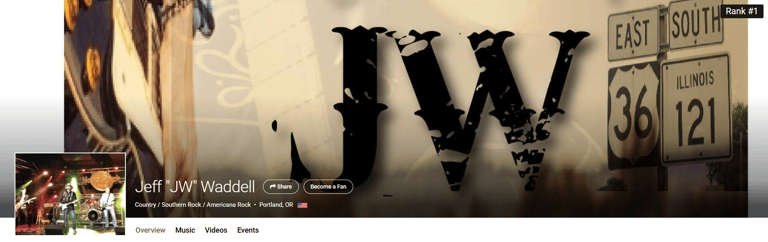 Jeff Waddell has charted at #1 on ReverbNation's Charts for the Pacific Northwest for 14 consecutive weeks with his single, "Opening Act".